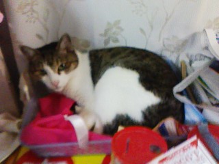 コタツをそのままテーブルにして、その上にいろいろなモノを乗せてるんですが、その狭間で丸まるのが好きらしい。