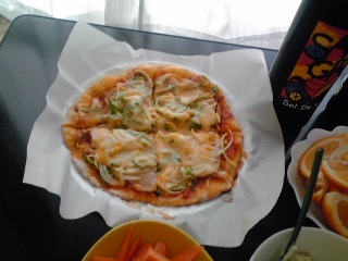 私のリクエストでパインのピザを作って、それもみんなで一緒に食べました。